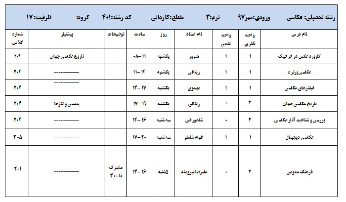 برنامه انتخاب واحد ورودی مهر97 (کاردانی)